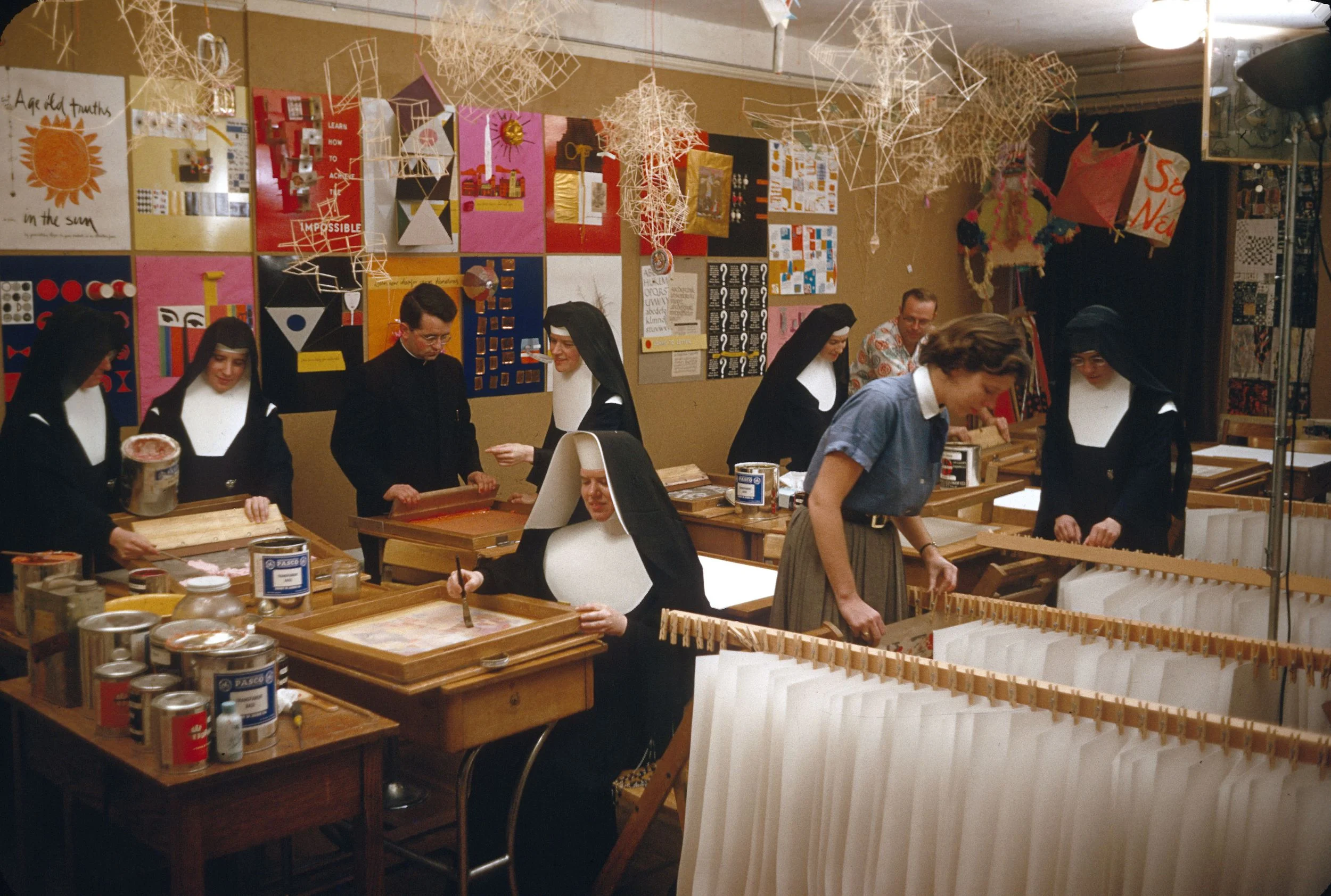 One Catholic nun influenced an entire generation of designers, artists and filmmakers. During the Vietnam War, she stopped being a nun and became a full-time artist and social activist. In the Sixties, people knew her as Sister Mary Corita Kent.